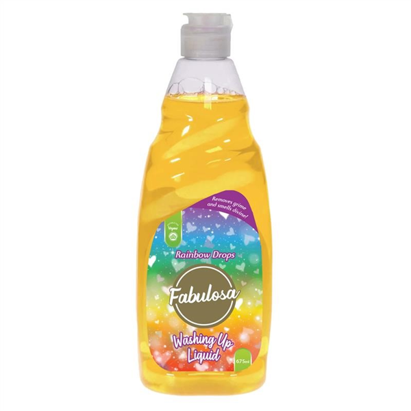 Fabulosa Washing Liquid Rainbow Drops 650ml is a concentrated laundry liquid infused with the uplifting Rainbow Drops fragrance