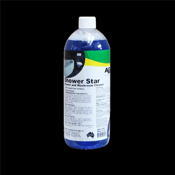 • Shower Star by Agar in a 1L bottle is a convenient, ready-to-use foaming bathroom cleaner designed to dissolve soap scum, body oils, and grime without the need for scrubbing or rinsing