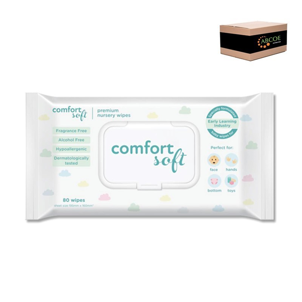 • Comfort Soft Baby Wipes 80/PK 12/CTN deliver a safe, gentle, and nourishing solution for baby care, combining extra thickness and softness with skin-loving ingredients KEY BENEFITS