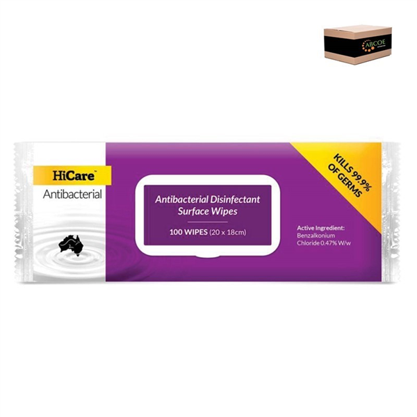HiCare Antibacterial Disinfectant Surface Wipes 100/PK 18/CTN