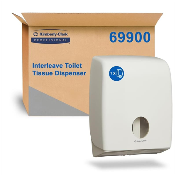 Measuring 317mm x 407mm x 147mm, it is compatible with KLEENEX® Interleaved Toilet Tissue (4322) and SCOTT® Interleaved Toilet Tissue (4321)