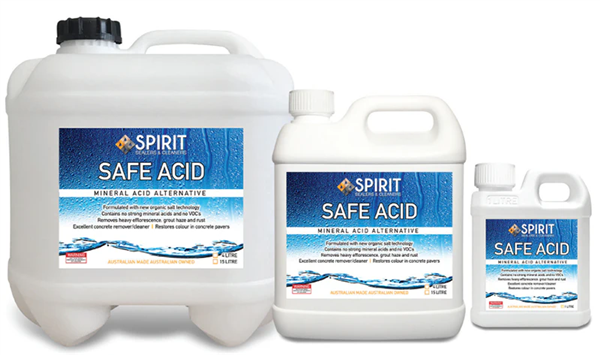 Spirit Safe Acid is a concentrated acidic cleaner developed as a safer alternative to hydrochloric acid