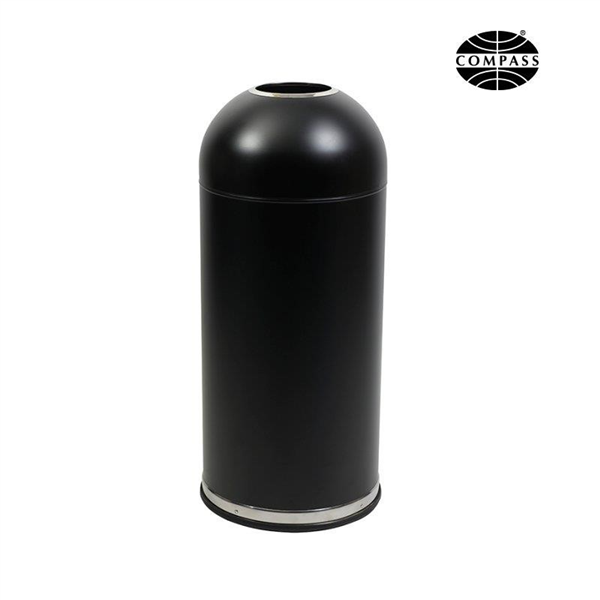 Featuring a matte black powder-coated steel body with a protective stainless steel top, it combines style with long-lasting performance