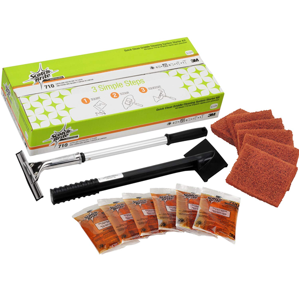 The 3M Scotch-Brite Quick Clean Griddle Cleaning Kit 710 is a complete, high-performance cleaning system designed to make daily griddle cleaning faster, safer, and more effective