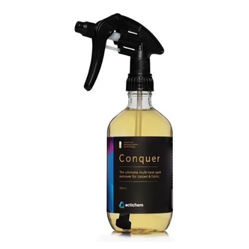 Conquer is a stain remover for carpets and upholstery, The unbeatable multi-task spotting solution effective on a wide range of water based and oily stains, with the added benefit of anti-resoiling encapsulation technology