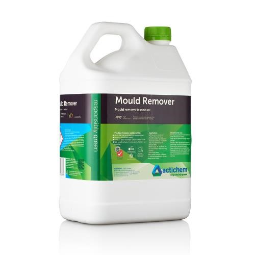 PRODUCT DESCRIPTION. Actichem Mould Remover GECA 5L is a powerful, eco-conscious mould treatment formulated to eliminate mould and mildew safely and effectively in high-moisture, hygiene-sensitive environments. Certified to meet GECA environmental standards, this high-performance solution rapidly kills mould at the source and removes stains without the use of harsh chemicals, making it safe for use on natural stone, tiles, grout, and all hard surfaces. Actichem Mould Remover GECA 5L also sanitises treated areas and neutralises odours, making it ideal for bathrooms, washrooms, changerooms, and kitchens where cleanliness and surface safety are critical