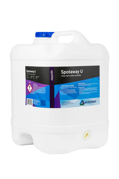 • Actichem Spotaway U is a peroxide-powered spotting solution formulated for high-performance removal of urine stains and associated discolouration on carpets and upholstery
