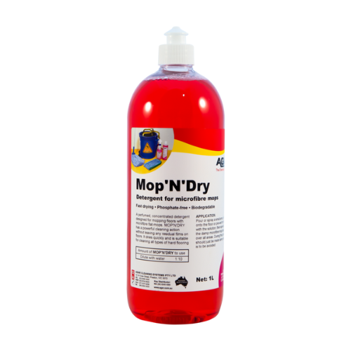 • Mop'N'Dry is a powerful, fast-drying detergent specially formulated for use with microfibre mops and spray-and-glide systems.