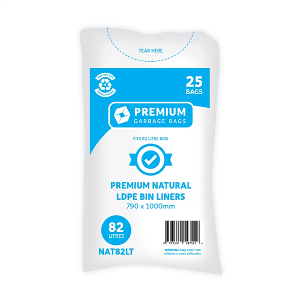 • 82L Clear LDPE Bin Liner – designed for medium to large waste bins