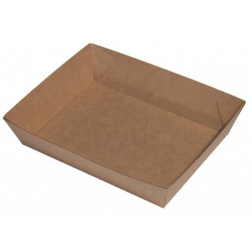 Board Food Tray #3. 180Lx134Wx45Dmm.The range is light and sturdy, designed for stand up and sit down meals at food markets. The funky, tapered design presents food in an insulated e-flute board and a favourite among food trucks and the like. Made from recyclable materials. Recyclable.