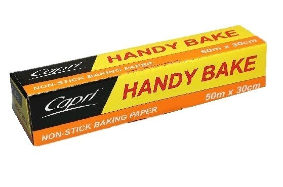 Capri Handy Bake is manufactured from 45gsm parchment paper. Designed for easy application when baking a wide range of products. Easy use small dispenser pack available in 120 meters.