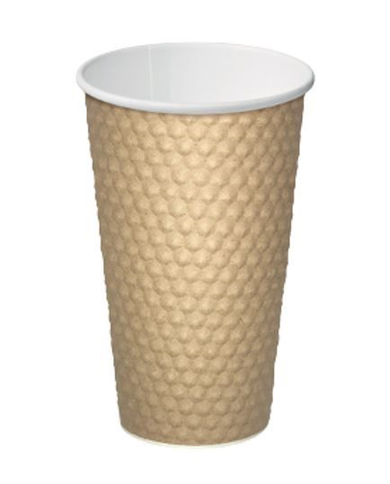 Brown Dimple Paper Hot Cup with insulating air pockets. Brown. Size: 16oz. 460mL. Qty: 20 per sleeve. 300 per carton. Item: CA-DMPL16-BRN.