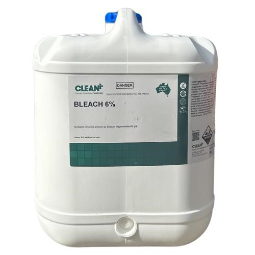 Bleach 6% is a yellow thin liquid with a characteristic chlorine odour. This product offers excellent disinfection properties against virulent organisms, especially gram negative rods which are becoming increasingly troublesome to control due to increasing incidence of acquired resistance. Chlorine compounds are well recognised as a disinfectant for selected applications in hospitals and more recently greater emphasis is being placed on the use of these compounds. Bleach 6% is suitable for Commercial and Domestic use, making it ideal not only for your home but also for hospitals, nursing homes and hotels. Concentrated 60g/L Sodium Hypochlorite. Deodorises, cleans and disinfectants. Removes Stains in Kitchens. Cleans Bathrooms. Whitens Clothes & Nappies. Size: 20L