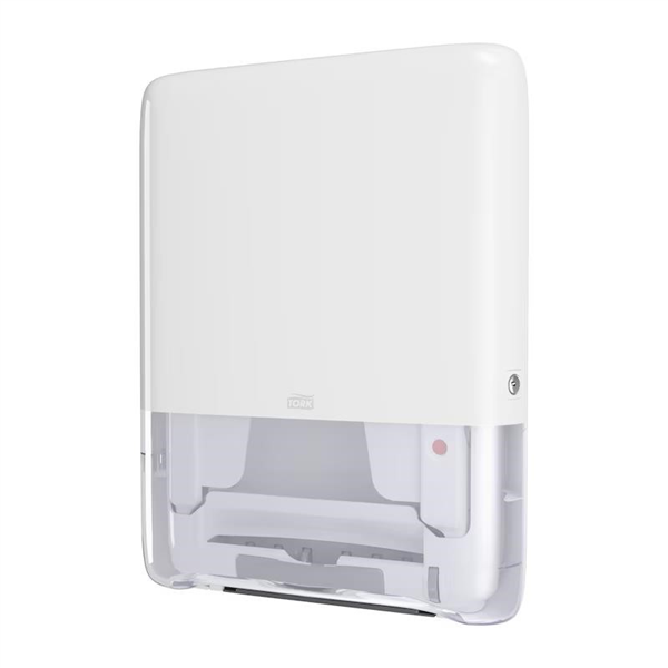 Compatible with Tork PeakServe® Continuous™ hand towels, it holds up to 1230 towels in a slim, space-saving unit that reduces the need for frequent refills