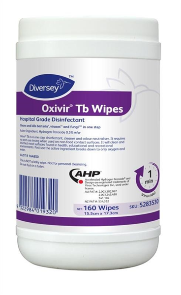 • The Diversey Oxivir Tb Wipes are hospital-grade disinfectant cleaning wipes powered by AHP® (Accelerated Hydrogen Peroxide) technology for fast, effective cleaning and disinfection