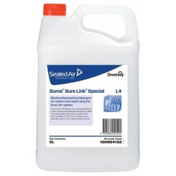 Diversey Suma Sure Link Special is a concentrated alkaline detergent designed for commercial dishwashing machines in hard water conditions