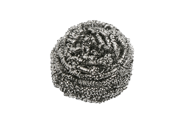 Super-abrasive stainless steel construction removes tough, baked-on grime and steel-pan residue with ease.