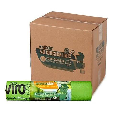 Envirostar Garbage Bag Compostable Green 240L 12/Roll 10/CTN