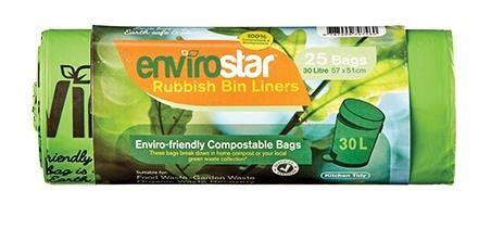 Envirostar Garbage Bag Compostable Green 30L 25/Roll