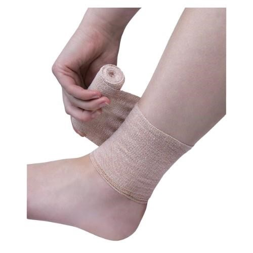 Fastaid Bandage Heavy Duty Crepe. Suitable for use as support for sprains and strains in joints and muscles. Also suitable for knee swelling, ankle swelling, and other relevant injuries. Colour: Brown. Dimensions: 5cm x 1.5m