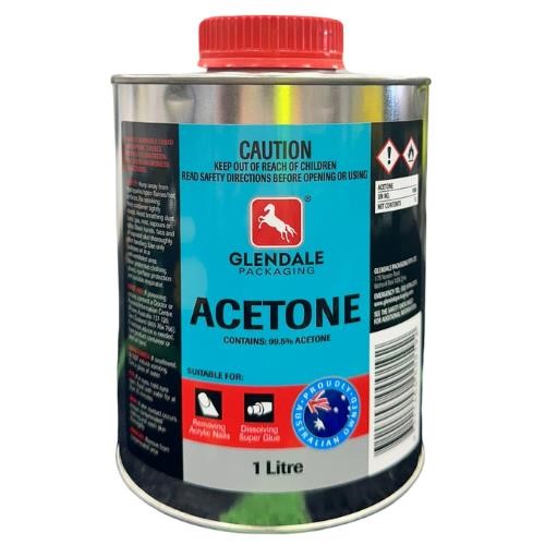 Glendale Acetone is an effective clean-up solvent for difficult resins, waxes and adhesives