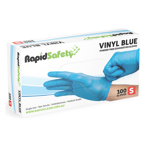 Vinyl Blue Powder Free Gloves are designed for short-term use. Vinyl gloves offer a cost-effective alternative to latex while providing an effective temporary barrier against biological contaminants. Examination gloves - Regular Duty. Ambidextrous. Comfortable beaded cuff providing extra strength and preventing liquid roll off. DOP & EHP free. Latex free. Blue Vinyl gloves provide easy indentification in food production. Technical data sheets available.