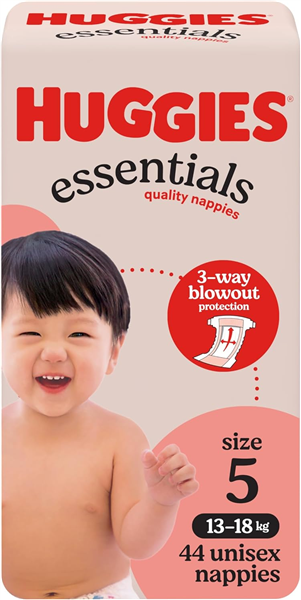 Huggies Essentials Nappies Walker 44/PK 13-18kg 4/CTN Size 5