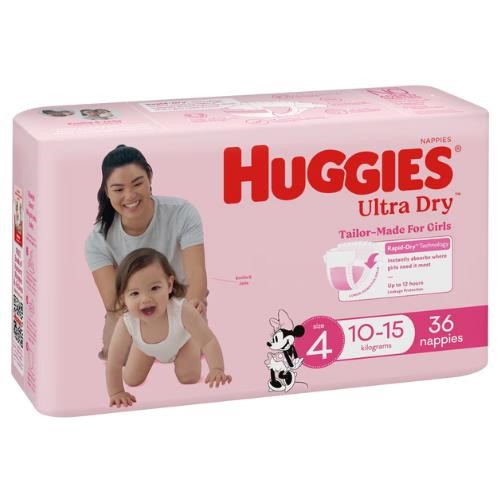 • The Huggies Nappy Pants Ultra Dry Toddler Girl 29/PK feature Rapid-Dry Technology, designed to absorb moisture instantly and keep your toddler's skin dry where it’s needed most