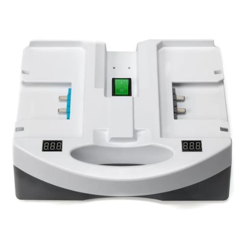 is a dual-channel fast charger designed to recharge i-power cleaning machine batteries rapidly and efficiently