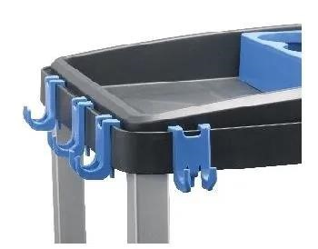 It allows cleaning tools or signs to be clipped and held in place, improving organisation and access during cart routes.