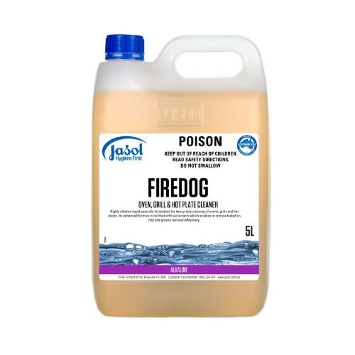 PRODUCT DESCRIPTION. FIREDOG is a highly alkaline, heavy-duty liquid cleaner expertly formulated to dissolve and lift stubborn baked-on fats, grease, and carbon deposits from ovens, grills, and hot plates. Its concentrated formula, enriched with advanced surfactants, penetrates tough residues rapidly, significantly reducing cleaning time and effort. Non-perfumed and safe for food preparation areas, FIREDOG is perfect for commercial kitchens, restaurants, catering services, and food processing environments. Additionally, it is HALAL and KOSHER certified to meet strict dietary and religious compliance