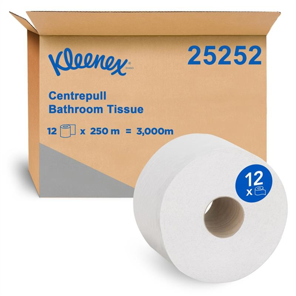 • Kleenex Toilet Tissue Centre Pull 2Ply 250M delivers a hygienic and efficient washroom solution with single-sheet dispensing that ensures users only touch the sheets they use, reducing waste and promoting hygiene