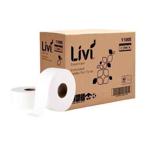Livi Toilet Tissue Essentials Jumbo 2PLY 300M 8/CTN 1100E