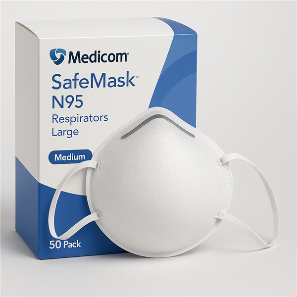 Medicom SafeMask N95 Respirators Medium, 50 Pack) provide advanced respiratory protection designed to filter out airborne particles, including dust, droplets, and microorganisms