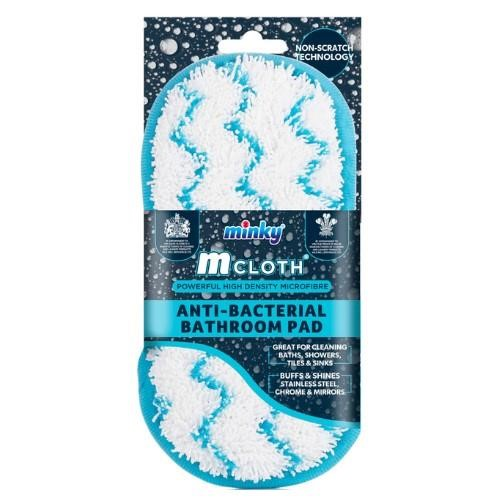 Minky Non-Scratch Anti Bacterial Bathroom Pad. The Minky Cloth Anti-Bacterial Bathroom Cleaning Pad is dual sided for powerful & effective cleaning in the bathroom. Great for cleaning baths, showers, tiles and sinks