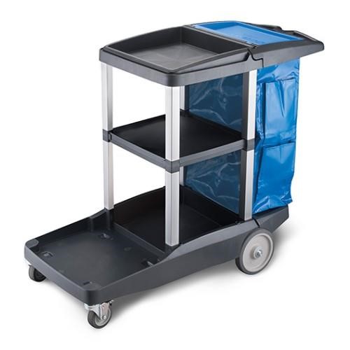 is a high-performance cleaning trolley engineered for commercial environments, combining storage, mobility and accessory support