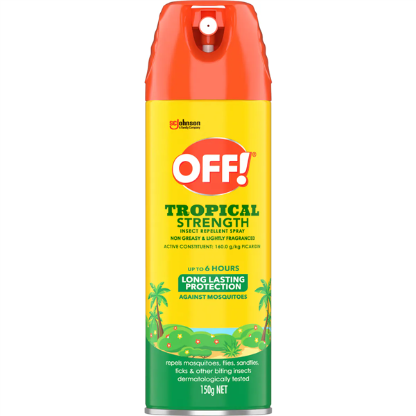 OFF! Insect Repellent Tropical Aerosol 150g is an effective insect repellent designed to provide protection against mosquitoes and other biting insects in tropical and high-risk environments.