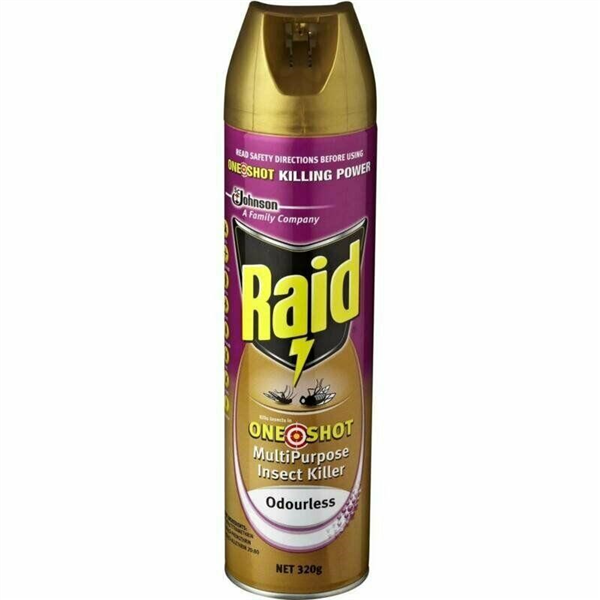 Raid One Shot Insect Killer is multi purpose so it can be used to eliminate a range of insects including flies, mosquitoes, cockroaches and more. It has a high concentration, so you only need to spray the insect once for it to start working. It's odourless so you can spray it around without having to move away from the area. There is 320 g in this bottle. Stop insects from annoying you with this spray. This bottle has a handy nozzle so you can direct the spray where it needs to go. It's odourless so you can spray it without causing unpleasant smells.