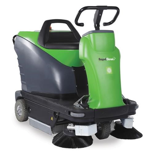 The IPC 1050 Ride-On Sweeper backed by Tennant and Exclusive to RapidClean Members can fit through an 82cm door, yet still clean up to 6,300 square metres an hour with its 650mm main brush path