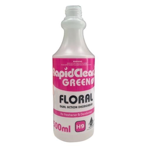 Durable, screen-printed spray bottle designed for safe and accurate dispensing of RapidClean Floral cleaning solution