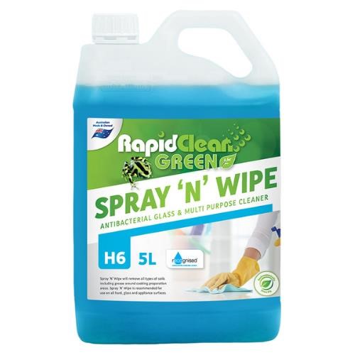 RapidClean Spray?n?Wipe 5L is a ready-to-use multipurpose cleaner designed for quick and effective removal of dirt, grease, fingerprints and everyday grime from hard surfaces