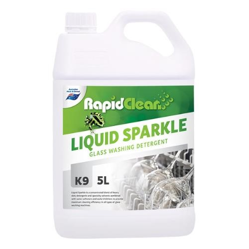 LIQUID SPARKLE is a concentrated blend of heavy detergents and specialty solvents combined with water softeners and scale inhibitors to provide maximum cleaning efficiency in all types of glass washing machines.