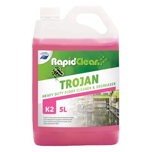 RapidClean Trojan Heavy Duty Floor Cleaner is made to cut through built-up grease and kitchen soil. It will strip-away grease on hoods, vents, ovens and kitchen floors