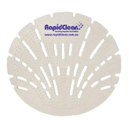RapidClean Urinal Screen 30 Days have a two-sided anti-splash texture, preventing splash back and cross contamination of urine to other areas outside the rest room. Extremely flexible to allow proper fit to any urinal contour. Translucent design allows total viewing of the drain to ensure it remains free flowing. Safe for use in waterless urinals. Scent: Melon Mist. Quantity: Each