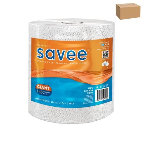 • Savee Giant Roll Towel 2PLY 480SH 6/CTN Tackle any mess with confidence using SAVEE Giant Roll Towel 2-Ply – the ultimate choice for homes, offices, and commercial spaces