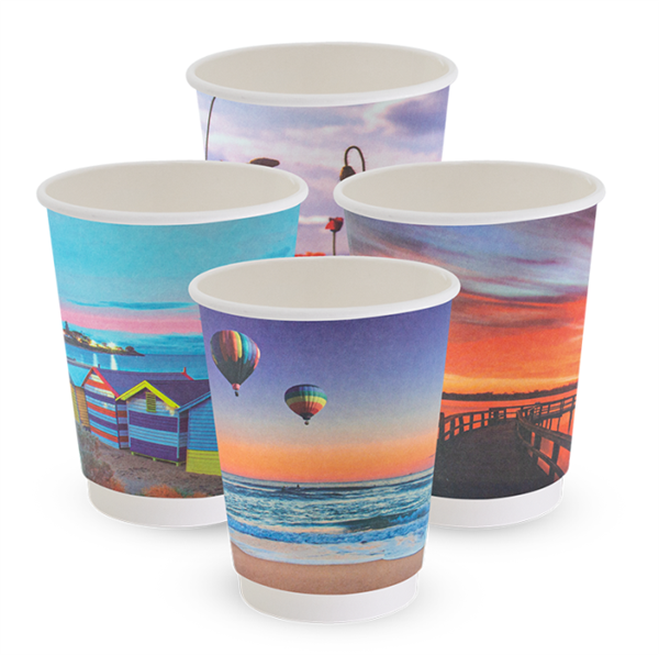 . 12oz True Fill Double Wall Smooth PLA Postcard Series Hot Cup 86.5mm