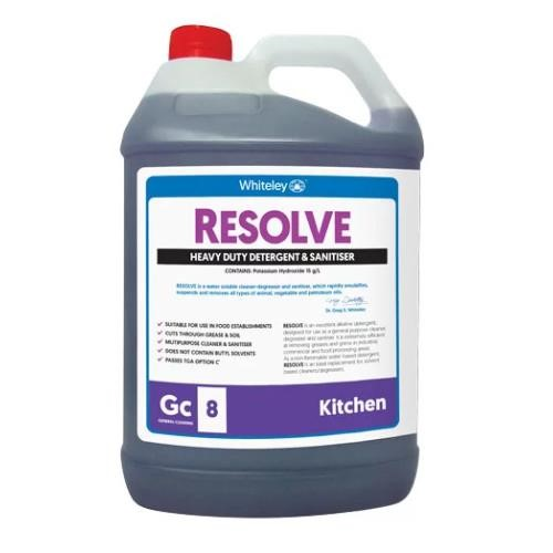 Whiteley Resolve All Purpose is a powerful water-soluble cleaner, degreaser and sanitiser designed to rapidly emulsify and remove animal, vegetable, and petroleum oils.